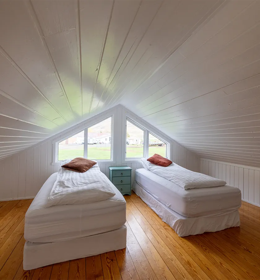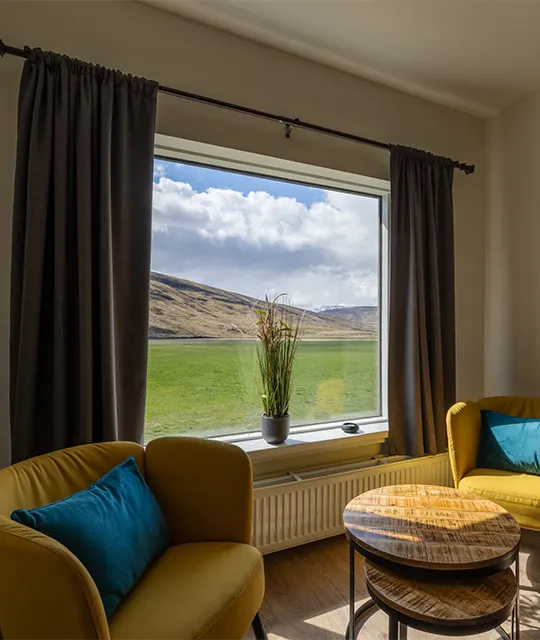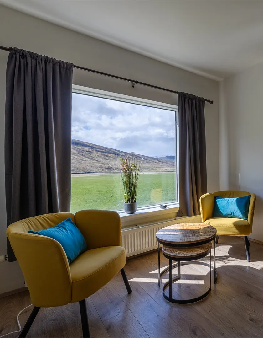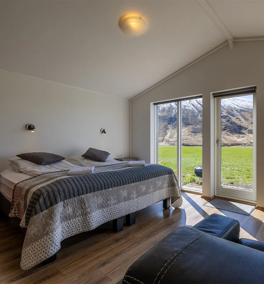 We offer a variety of accommodation types to suit different needs — from Guesthouse rooms to private Studio Apartments and a House (Selið). Choose from Double or Twin rooms in the main Guesthouse, a bright Cottage with valley views, two fully equipped Studio Apartments (one with a mountain view), or Selið — a spacious House ideal for couples, families, or small groups. The accommodation also work well for solo travelers looking for more space and privacy.