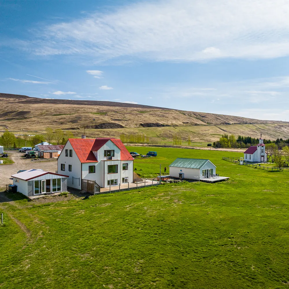 Bólstaðarhlíð is a farm in Northwest Iceland, where the same family has lived since 1825. The small church nearby was built in 1888 by one of our ancestors and still stands as a quiet part of the landscape. The main farmhouse, originally built in 1952, has been carefully renovated in recent years to welcome guests in comfort.
